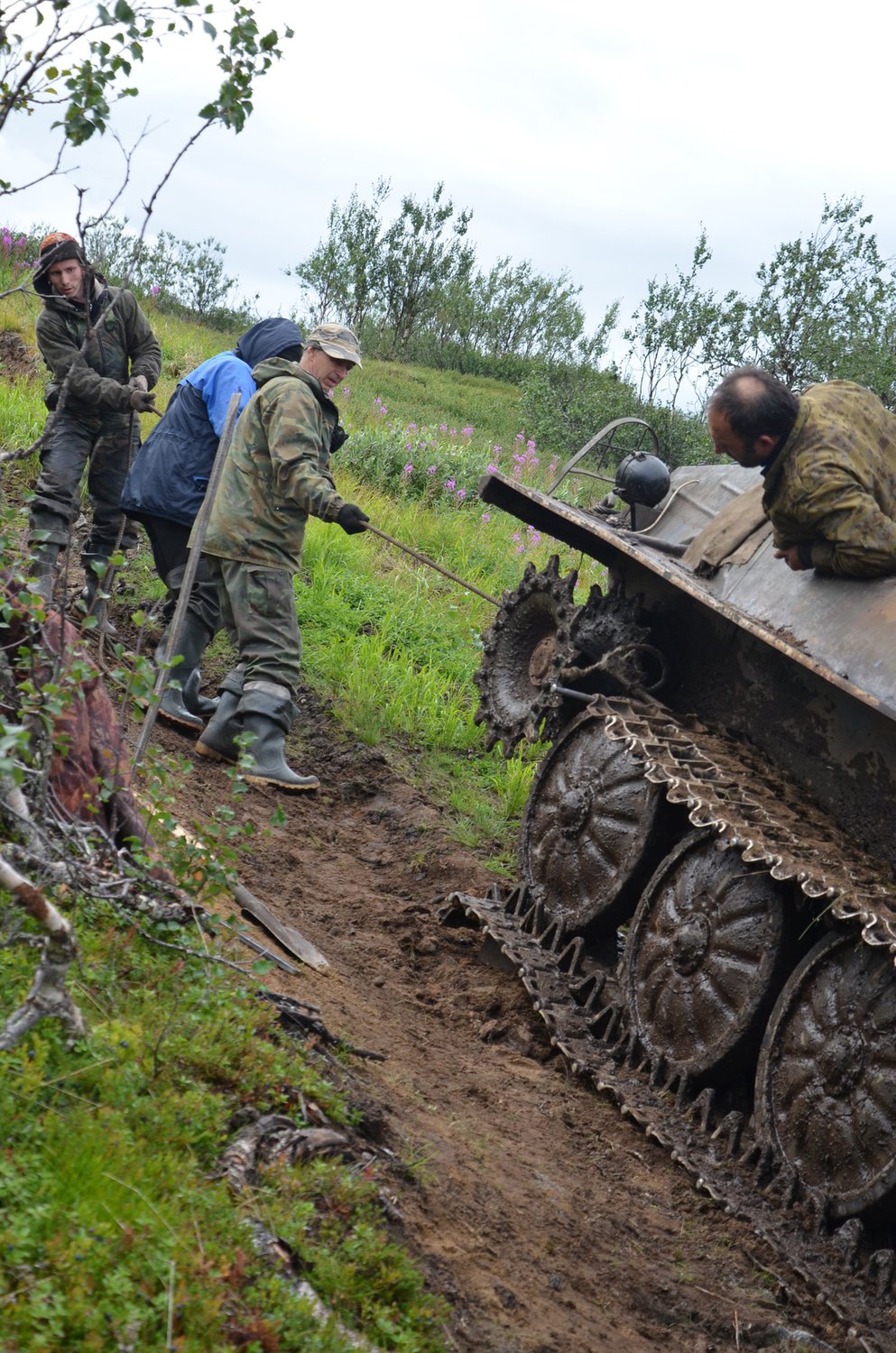12 дней августа 2014 года мы с семьей провели в тундре, на Кольском полуострове. Места это труднодоступные - выбраться в "цивилизацию" можно только вертолетом или вездеходом. Мы возвращались на вездеходе двое суток по болотам и лесотундре и были восхищены опытом, смелостью, стойкостью вездеходчика Юры и его команды. Слетела гусеница или увязли в болоте - ничего не страшно рядом с этими настоящими мужчинами!