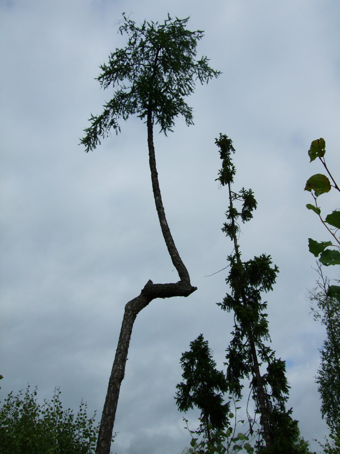 Лиственница – широко распространённая порода хвойных деревьев В Архангельской области. Снимок сделан 30 августа 2014 года в лесу, прилегающем к деревне Марилово Холмогорского района Архангельской области.