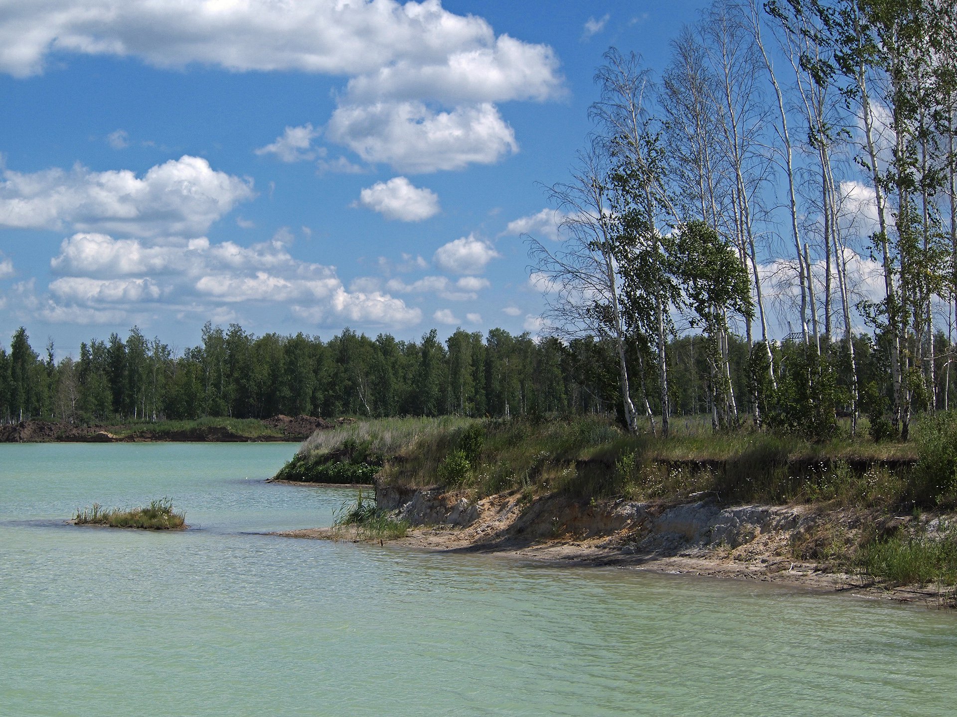 Взгляду открывается невероятная красота карьера, цвет воды которого просто потрясает.
