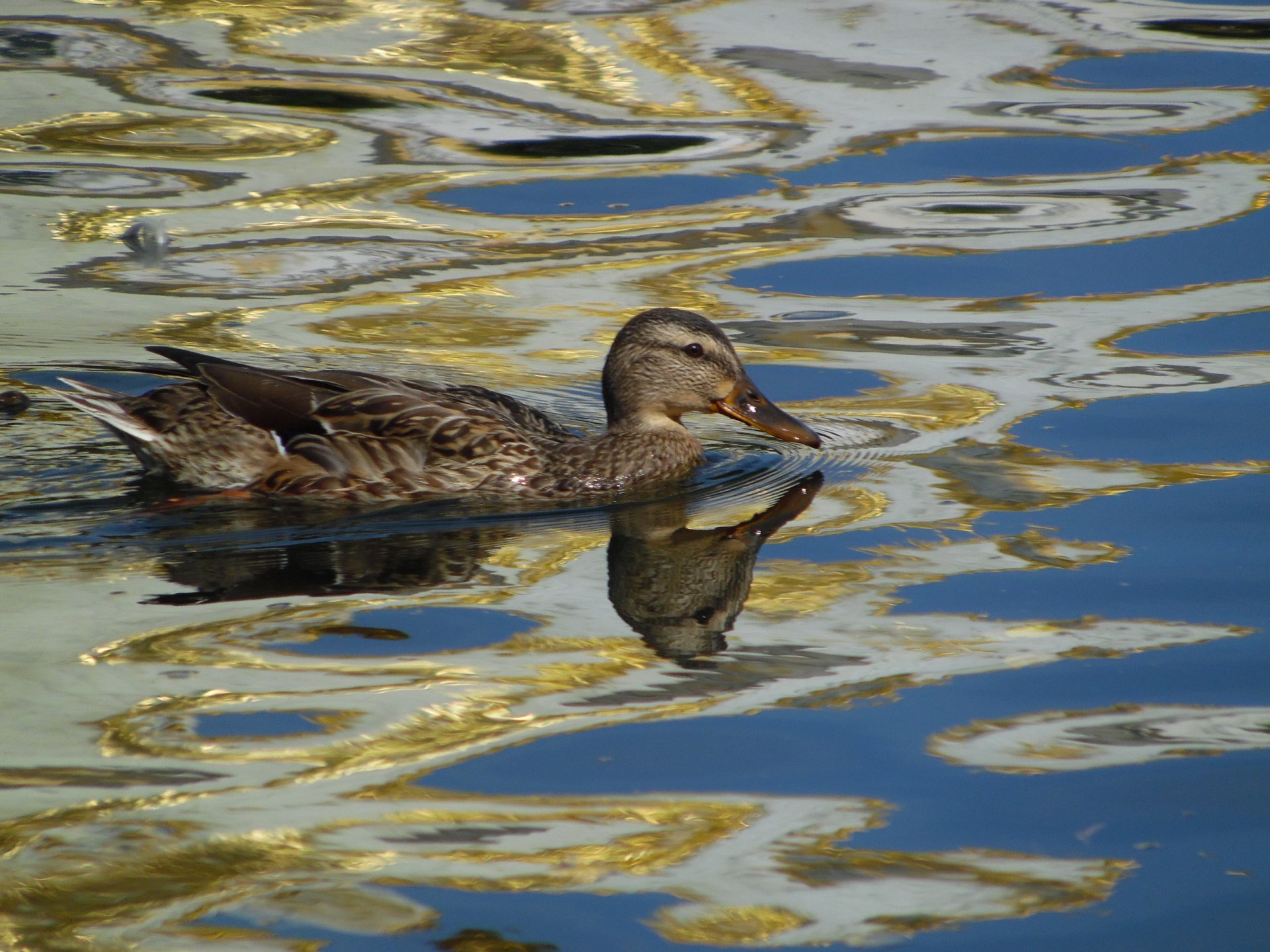 Уточка, плывущая по золоту