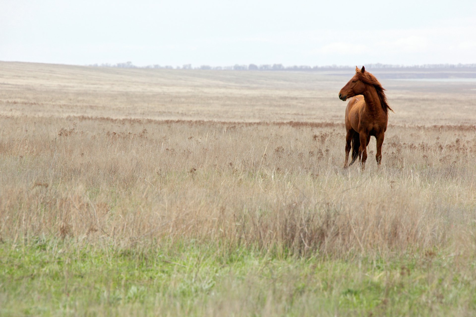 Дикие лошади – прекрасное зрелище открывается на острове в озере Маныч-Гудило. Ростовский биосферный заповедник, 2011 год.