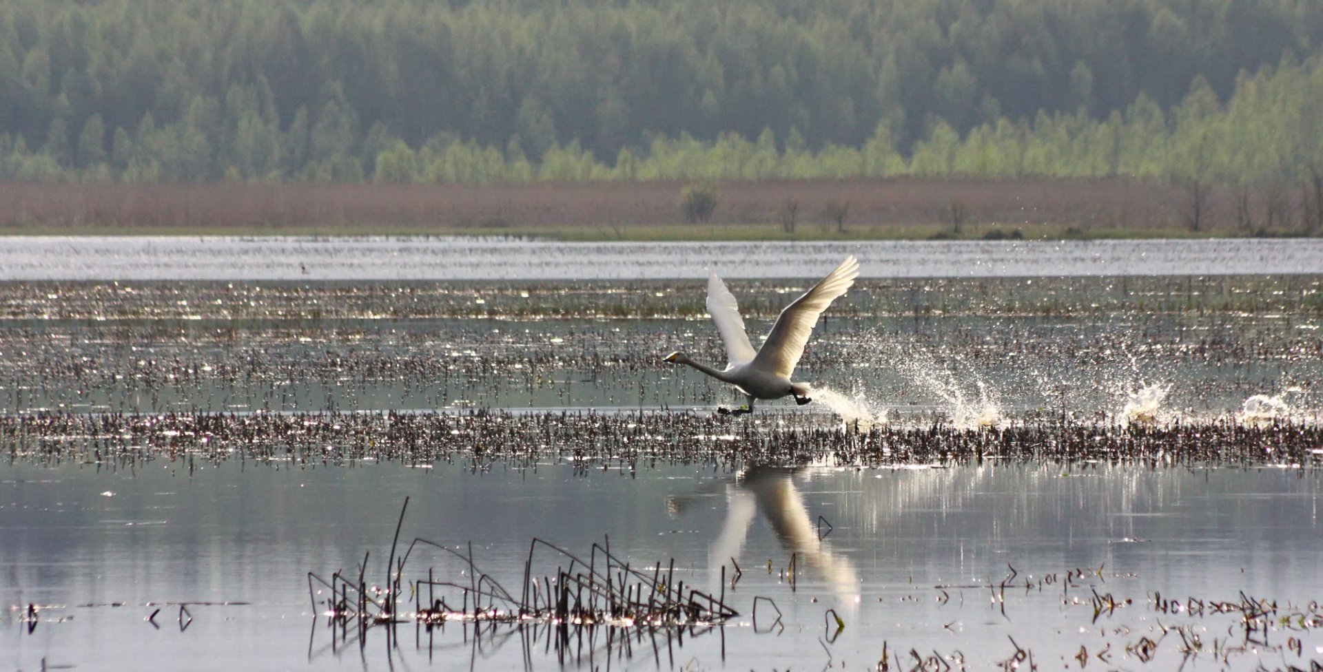 Удивительное зрелище - взлетающий лебедь! Мощный, красивый разбег, едва касаясь глади воды - и взлет!