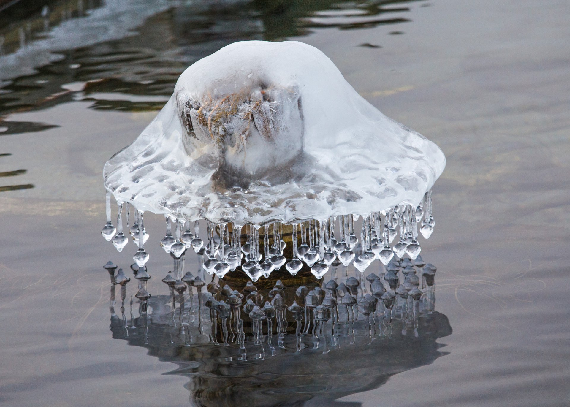 На прибрежных камнях, покрытых ледяным панцирем, появились сосульки – разных форм и размеров. Как порадовалась бы Эмилия такой шляпке!