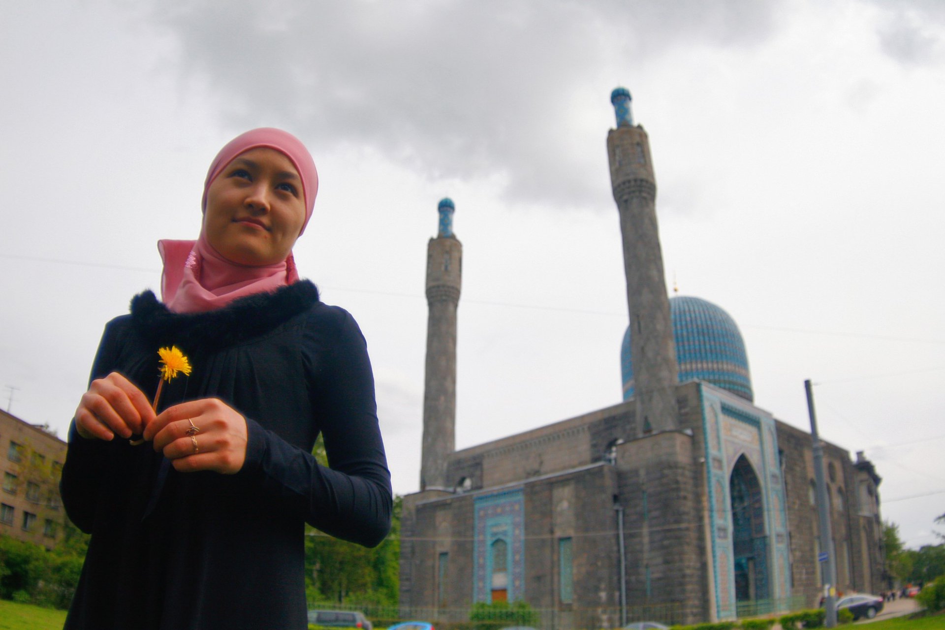 Санкт-Петербурженка Лола на фоне Санкт-Петербургской соборной мечети