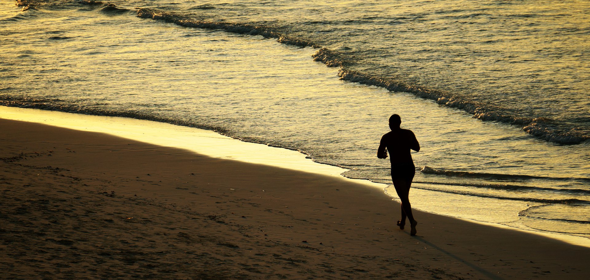 Пляж варадеро на закате. Мужчина бежит в "ритме волн"