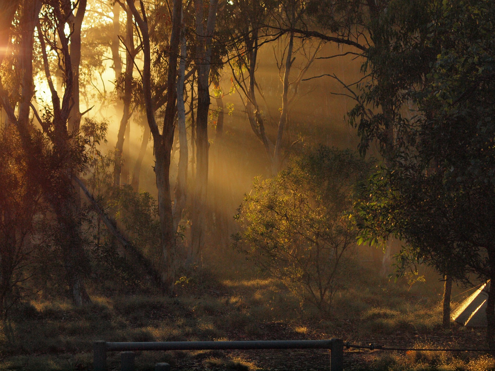 Восход солнца в эвкалиптовом бору. Австралия.