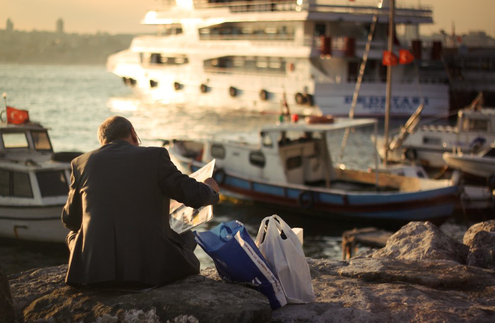 После работы почему бы не посидеть на берегу и не почитать , к примеру - газету?Стамбул