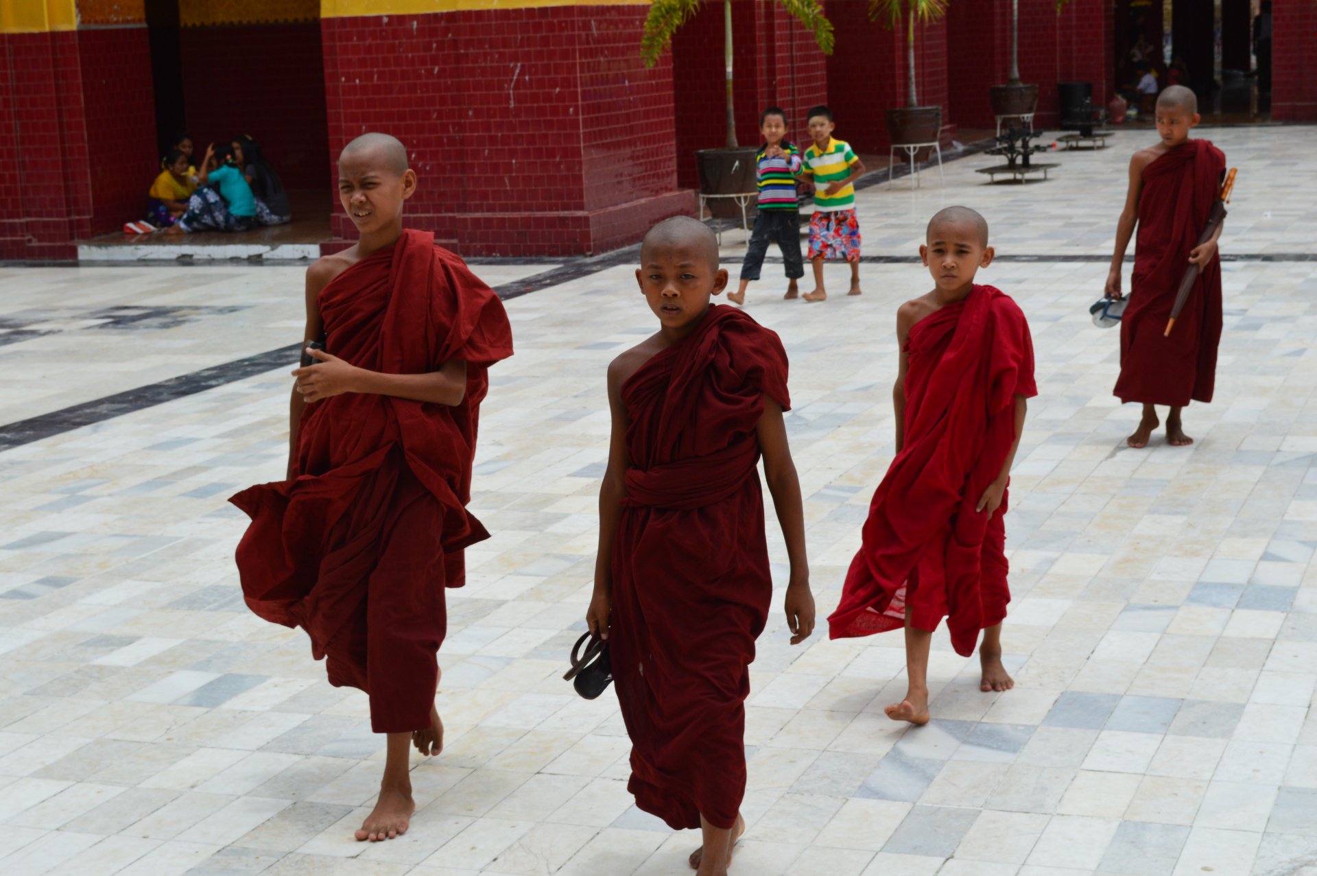 Мьянма. Юные монахи идут в храм