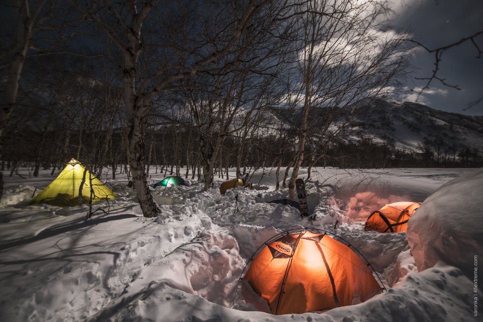 Базовый лагерь во время бэккантри на Камчатке.