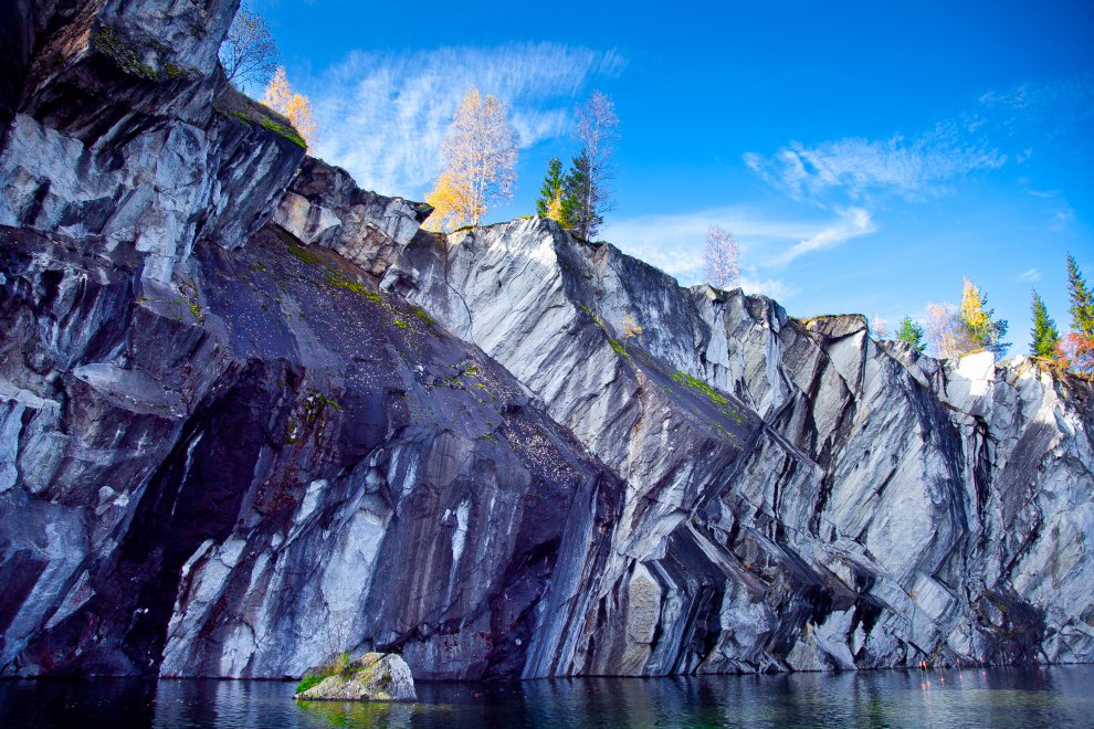 Отвесная стена Рускеальского мраморного карьера, Карелия, Россия