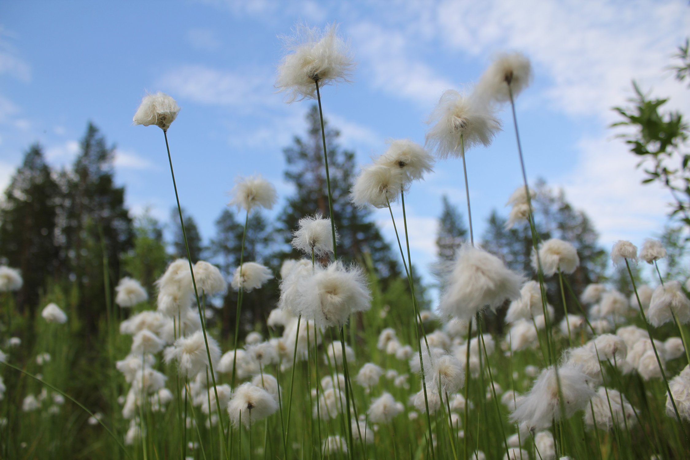 Пушица - болотное растение, лакомство северных оленей после таяния снега.