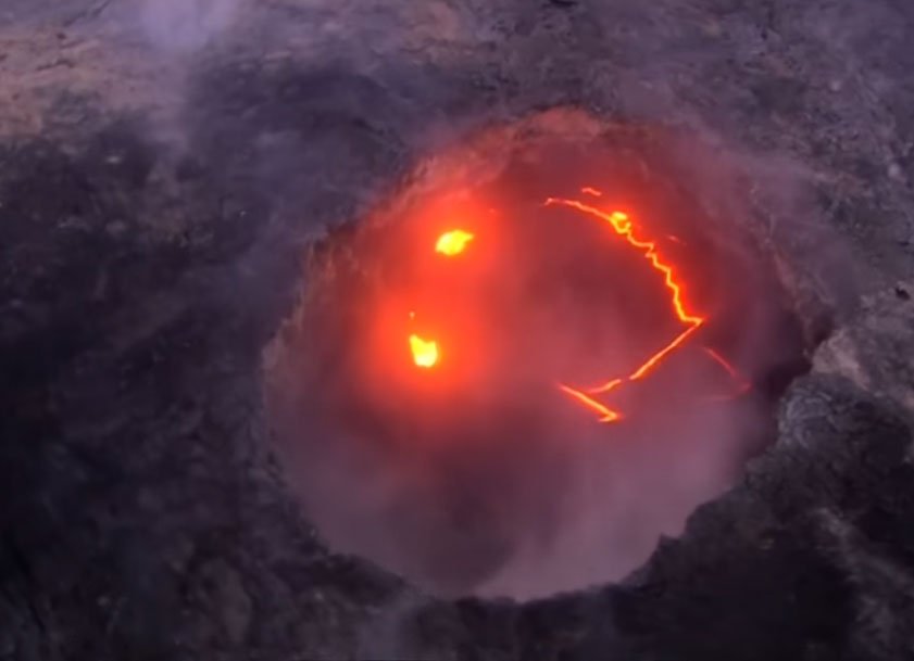 Гавайский вулкан Килауэа – один из самых необычных на планете. Он извергается на протяжении последних 30 лет, а в августе 2016 года в его кратере появилась улыбка, созданная лавой.