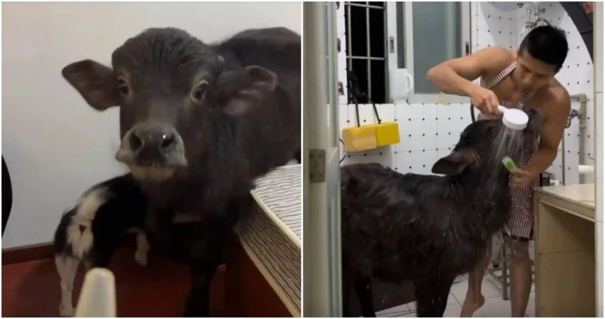 Житель Китая пожаловался в социальных сетях на то, что его уже несколько раз выселяли из съемного жилья после того, как в январе он купил себе черного буйволёнка и начал жить с ним в одном помещении.