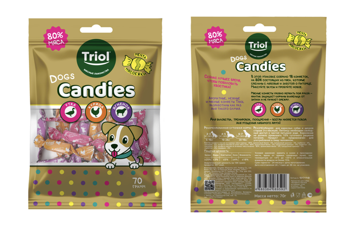 Летом особенно сложно отказать питомцу в угощении. Новинка от Triol — Dogs Candies — натуральное мясное лакомство, которое удобно брать с собой в парк, на пикник или в поездку. В каждой «конфете» — 80% мяса без добавок и консервантов.