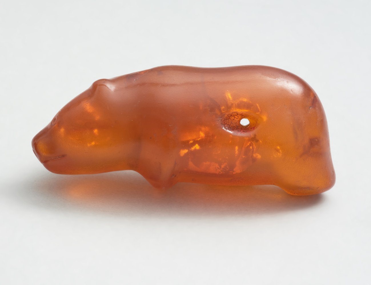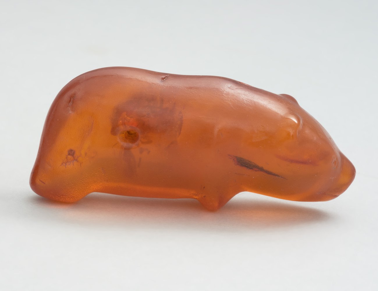 Фигурка предположительно была вырезана между 9600 и 4100 годами до нашей эры. Исследователи предполагают, что мишку могли носить охотники каменного века в качестве защитного амулета: в этом регионе медведь оставался самым опасным хищником. Об этом говорит и небольшое отверстие, пронзающее середину туловища медведя – словно созданное для того, чтобы продеть через фигурку шнурок и повесить на шею. Янтарь, из которого сделан мишка, происходит из морских отложений.