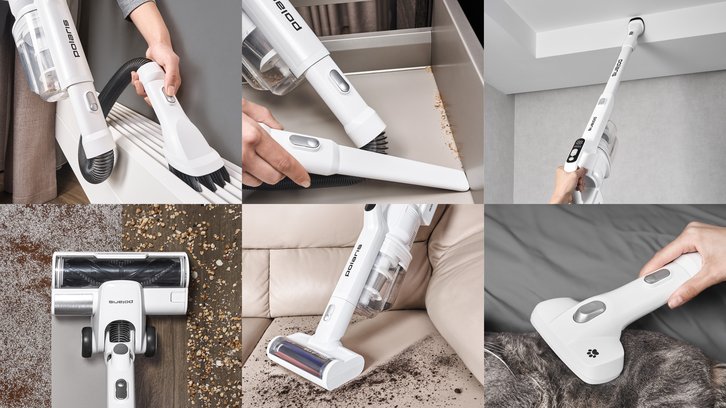 Съемная моторная часть, дополнительные трубы, электрощетки и большое количество насадок позволяют подстраивать пылесос по форме и размеру под каждую конкретную задачу. Например, у пылесоса Polaris PVCW 8090 можно соединить моторную часть с отдельным пыленакопителем и насадку-щетку для животных, и получится компактный пылесос для грумминга.