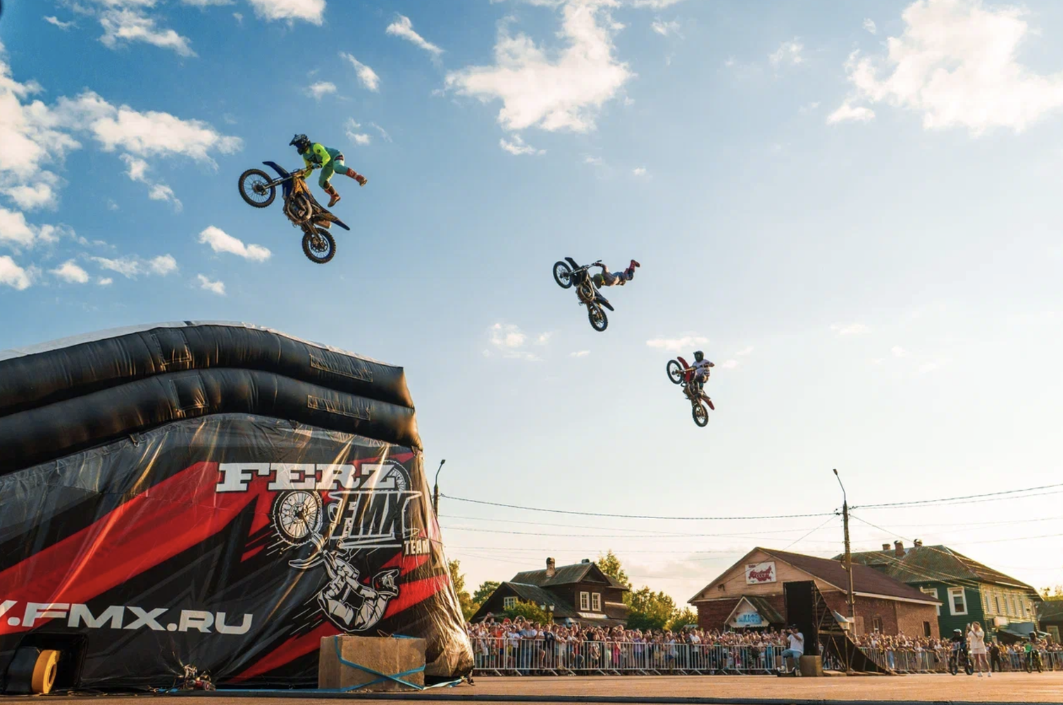 В этот раз на главной площади Вельска чемпионы по мотофристайлу показывают невероятные трюки и поразительное владение мотоциклами даже в воздухе, в небе над ними крутят пируэты парапланеристы и пилоты парапланов, на набережной шумит ремесленная ярмарка, а на важских лугах встают лагерем автотуристы-караванеры.