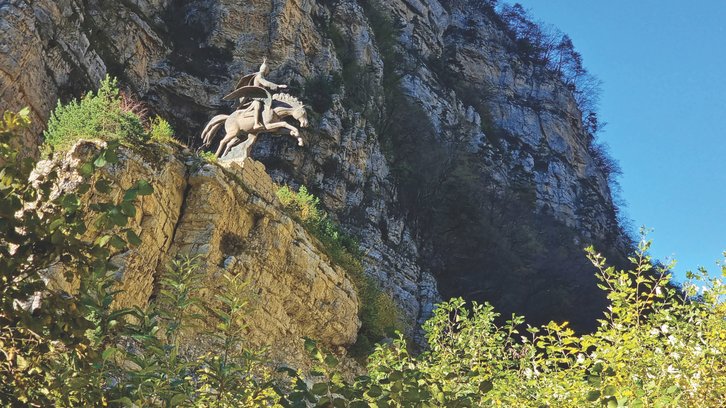 Здесь по сей день живут гордые потомки дигорцев, которые до сих пор говорят на диковинном дигорском языке – предтече современного осетинского. Как и в других частях республики, в Дигории можно увидеть руины родовых башен, жилых и сторожевых, полуразрушенные склепы фамильных некрополей и остатки некогда неприступных крепостей. Но всё это лишь довесок к природным красотам Кавказа, входящим в образованный в 1998 году национальный парк «Алания». В него ведёт одна-единственная дорога вдоль реки Урух, и туристы всегда делают остановку на Чёртовом мосту в каньоне Ахсинта, где взбивающая клочья пены вода продирается через узкую теснину. А чуть дальше над шоссе нависает статуя всадника Уастырджи – главного героя-богатыря кавказского эпоса, врага мошенников и покровителя путников.
