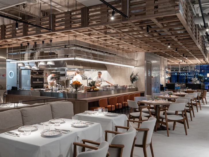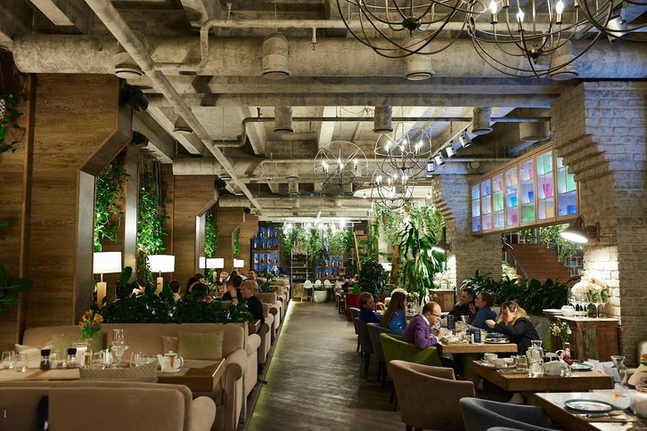У ресторана обширная коктейльная карта, где особенно выделяется «Коктейльный атлас путешествий по России», и хорошая подборка вин. Не забудьте оставить место для десерта — их подача здесь приравнивается к настоящему искусству. Это универсальное место, которое подойдет для разных поводов: в будни здесь подают бизнес-ланчи, а для путешественников с детьми предусмотрено отдельное меню.