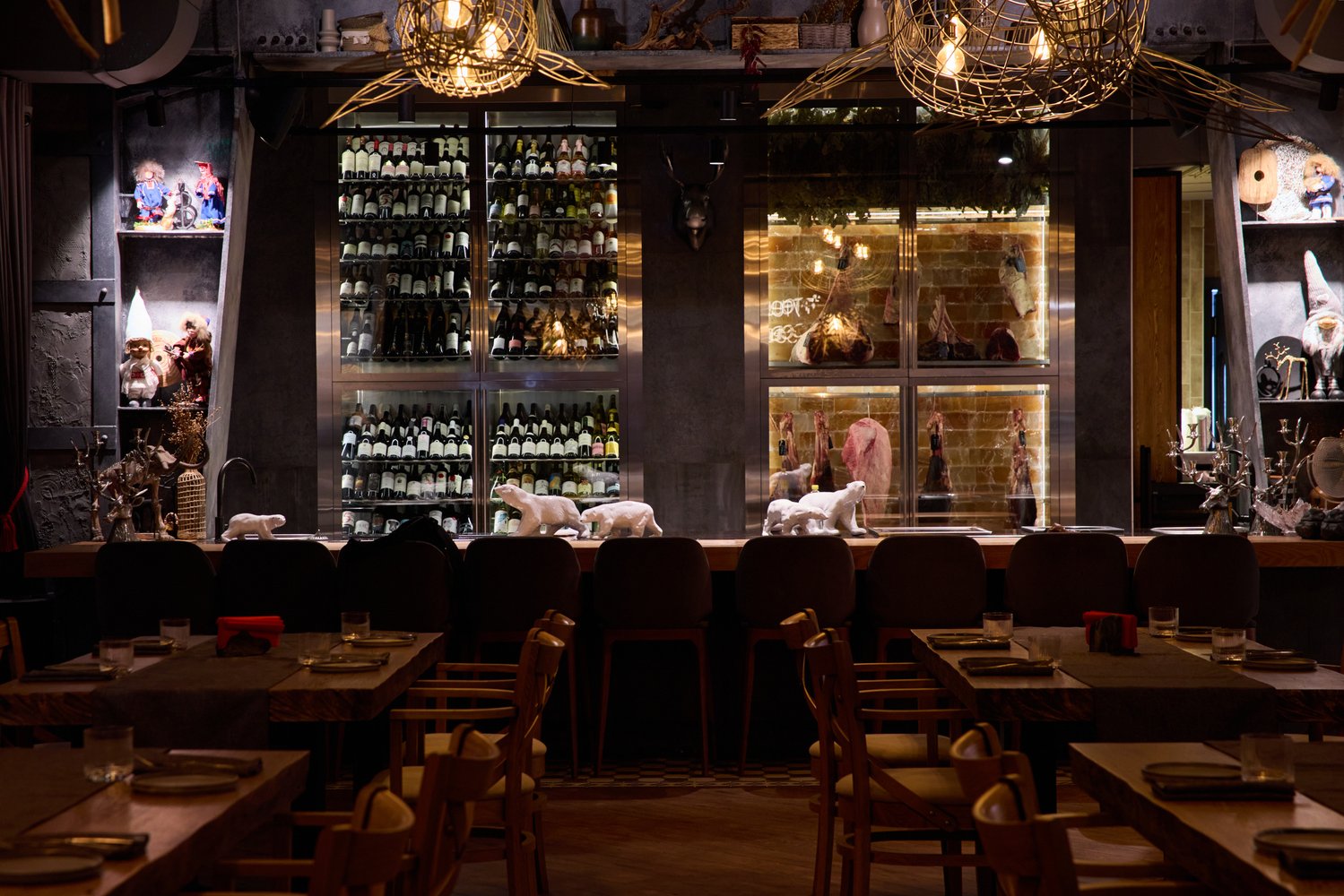 Ресторан с говорящим названием переносит гостей в атмосферу богатого охотничьего дома. Интерьер впечатляет деталями: сложная резьба по дереву, ставни на окнах, картины со сценами охоты и настоящие трофеи создают совершенно особенный антураж.