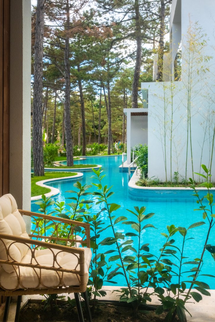 Здесь гости размещаются не в общем корпусе, а в современных комфортабельных виллах, оснащённых всем необходимым. Уютные спальные зоны, бытовая техника и продуманный дизайн создают ощущение дома, в который приятно возвращаться после насыщенного дня. Коттеджи расположены вокруг трёх бассейнов, два из которых имеют удобную детскую чашу. Номера категорий LUXE и SUPERIOR предлагают собственный выход прямо к бассейну. В общем, идеальный набор для классного утра: выпить утренний кофе на террасе и следом – нырнуть в прохладную воду без необходимости куда-то идти.