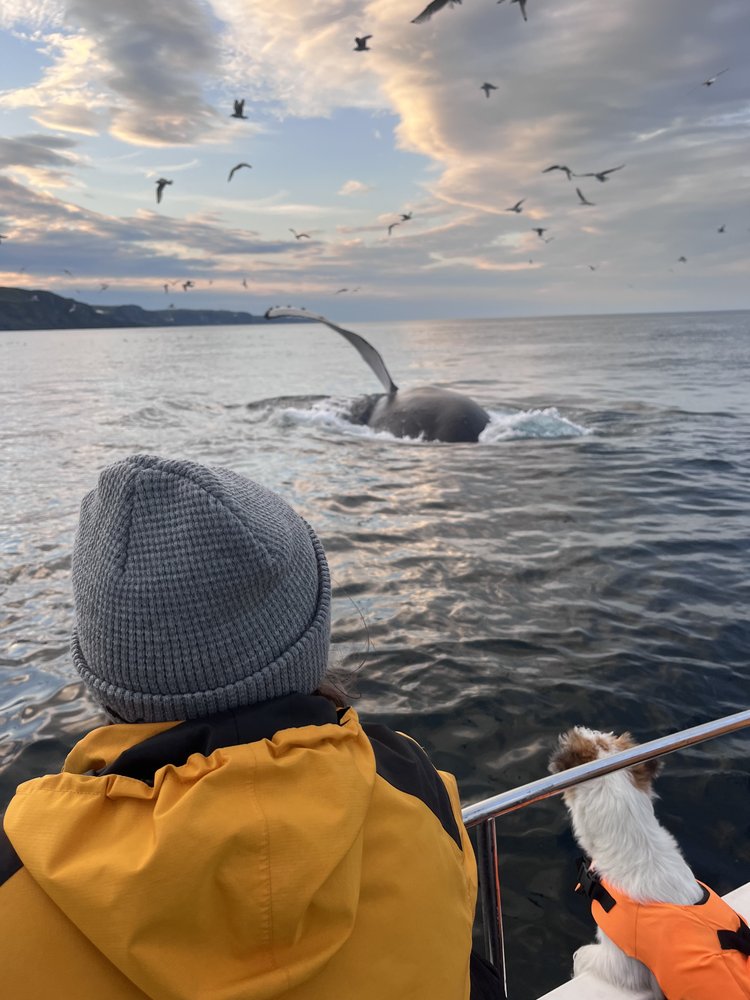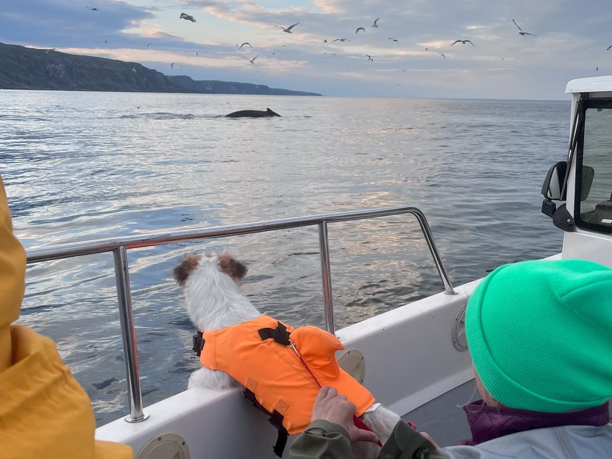 Эксперимент стартовал год назад. Тогда Жужа отправилась изучать гренландских китов в Охотское море. Она хорошо переносила качку, легко адаптировалась к жизни на судне и показала задатки хорошего «искателя» китов.