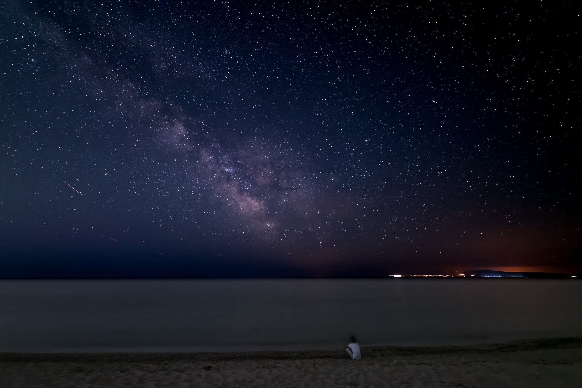 Я сфотографировал своего сына, когда он сидел на берегу и любовался ночным небом.