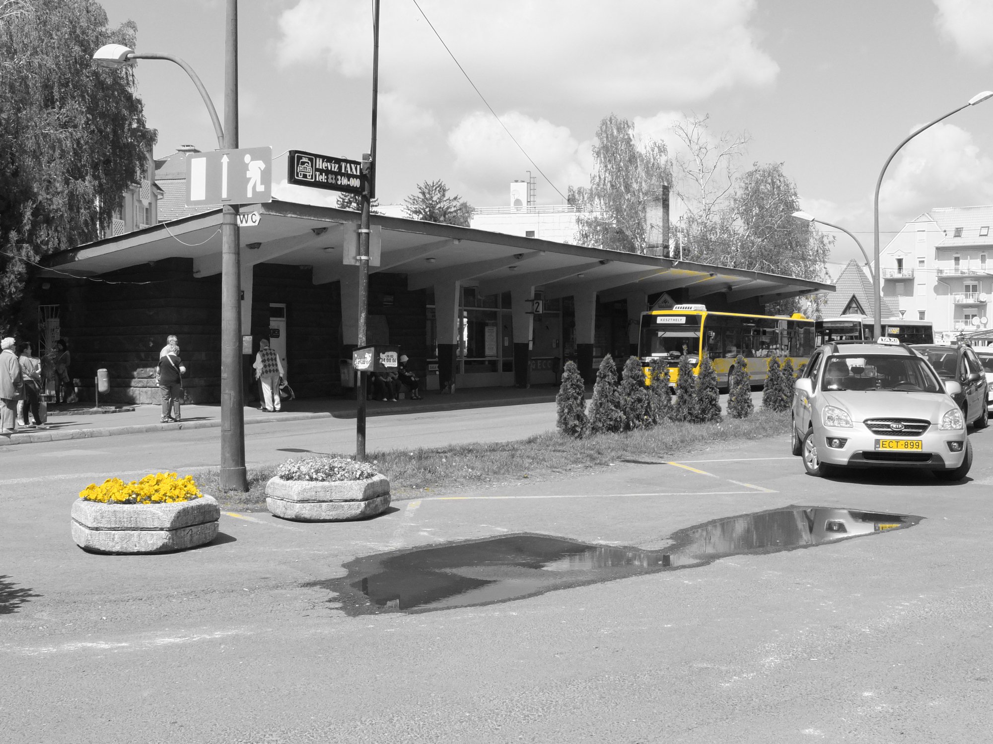 Автовокзал в городе Хевиз (Венгрия)Желтый цвет - фильтр "выделение желтого цвета" в фотоаппарате Fujifilm X10