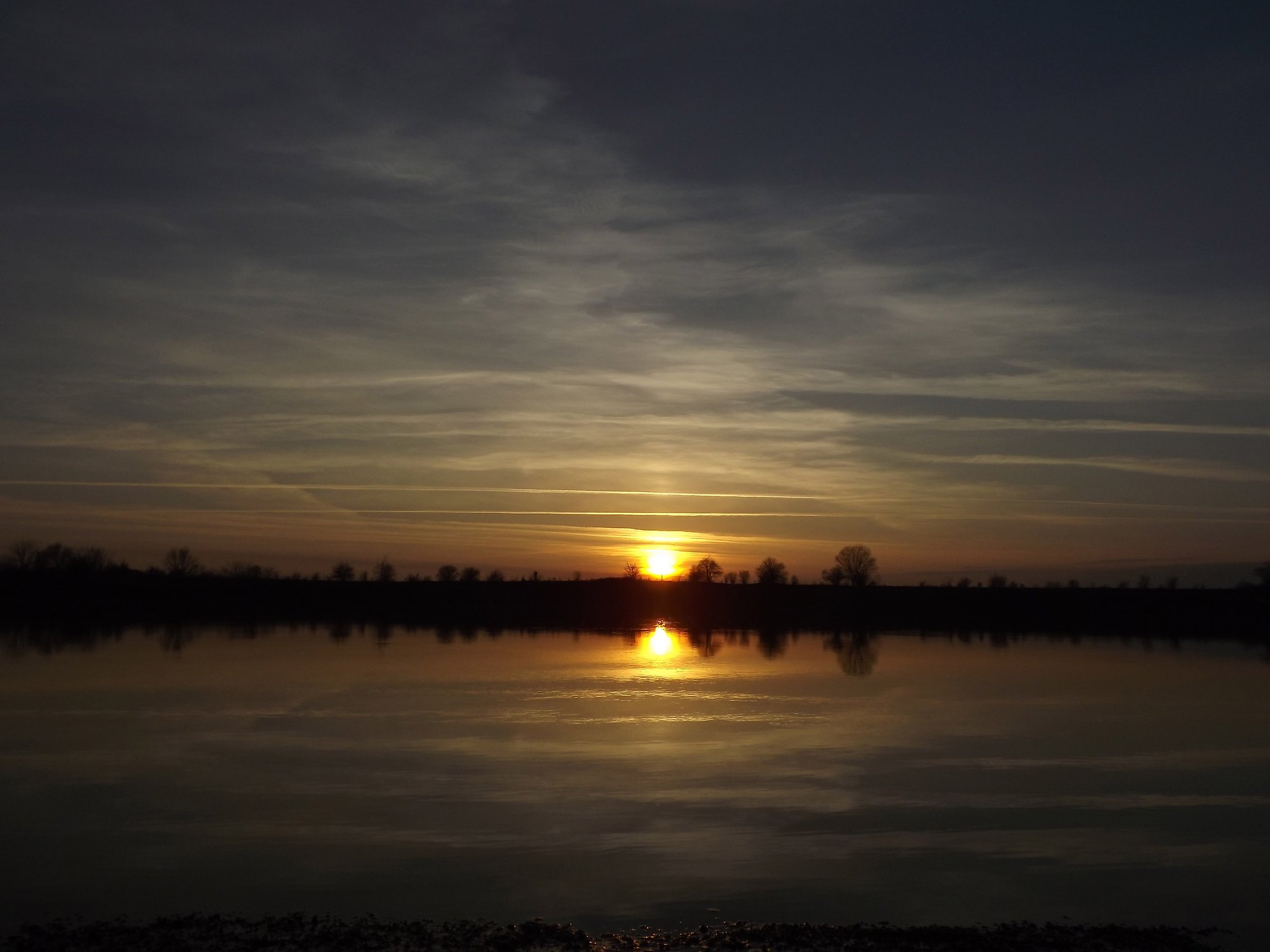 Вечер. Лучи солнца отражаются на вечерней воде реки Кубань.
