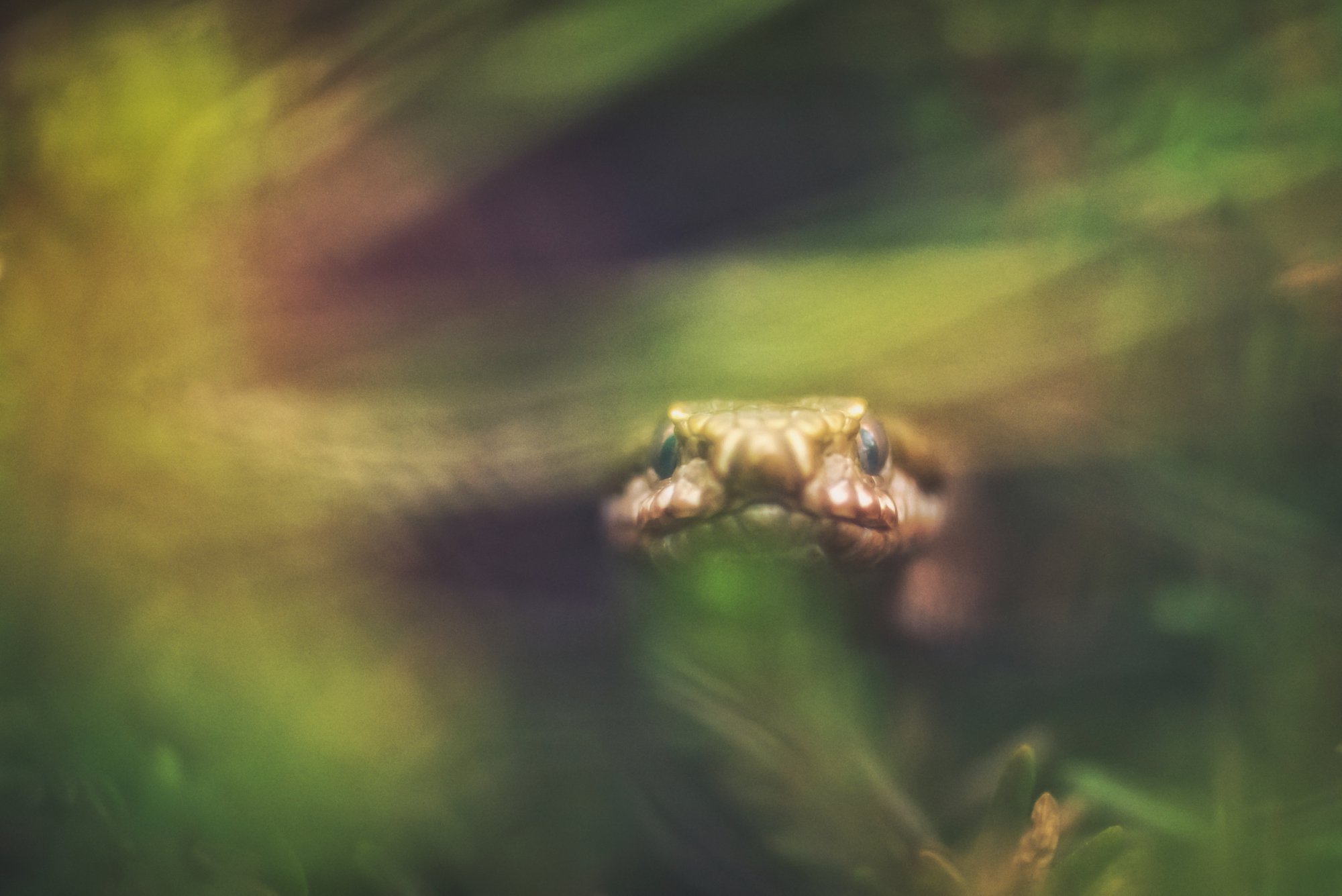 Молодая гадюка заняла одну из многочисленных кочек верхового болота, где охотится на насекомых.