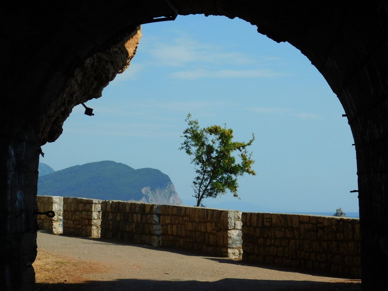 Эта фотография сделана на черногорском побережье. Там, чтобы добраться до малолюдного пляжа надо было пройти через темный туннель. Такой вид открывался на выходе из него.