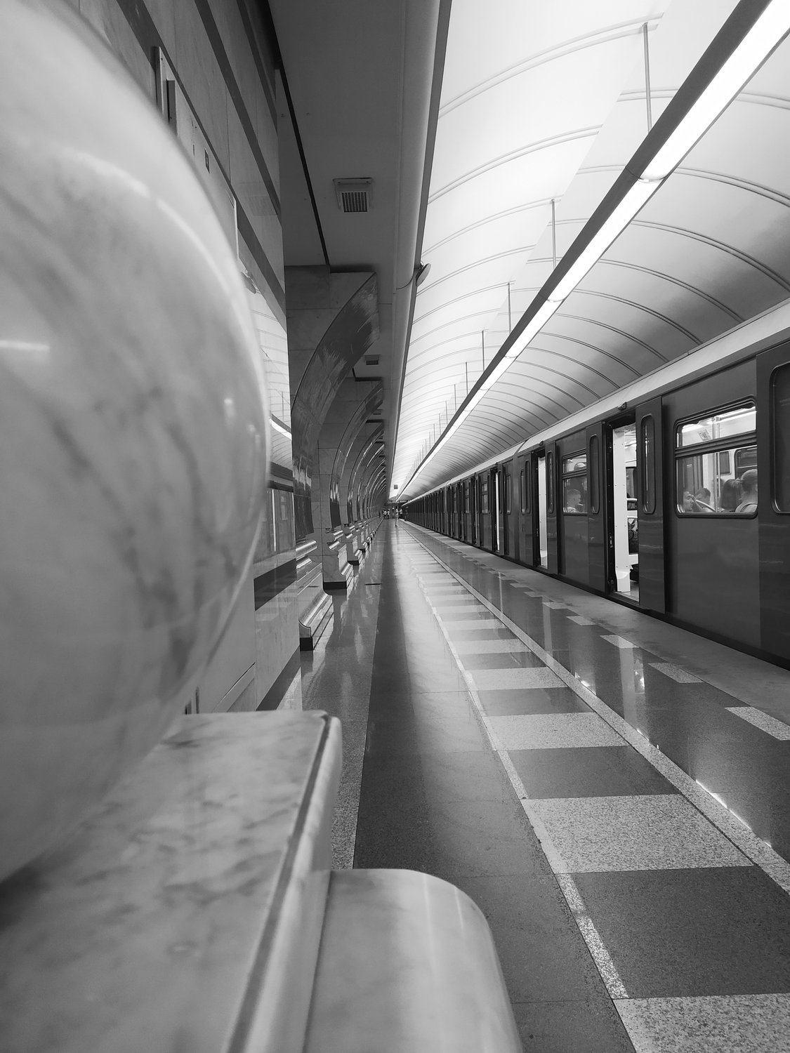 Ночная, безлюдная станция московского метро "Парк Победы"