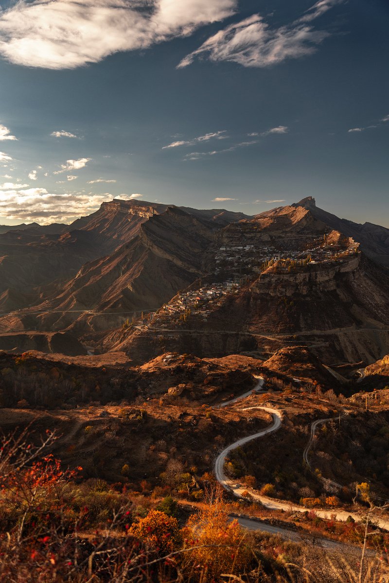 Осенняя дорога с видом на село Гуниб. Дагестан.
