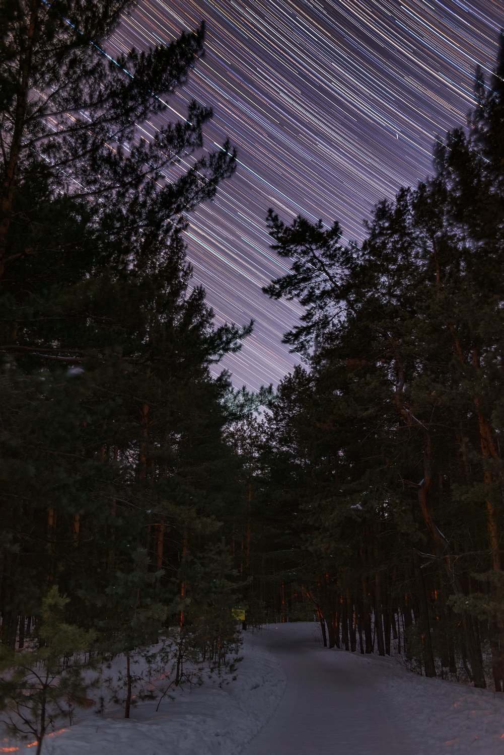 Ясная ночь в сосновом бору на границе Красноярского края и Хакасии