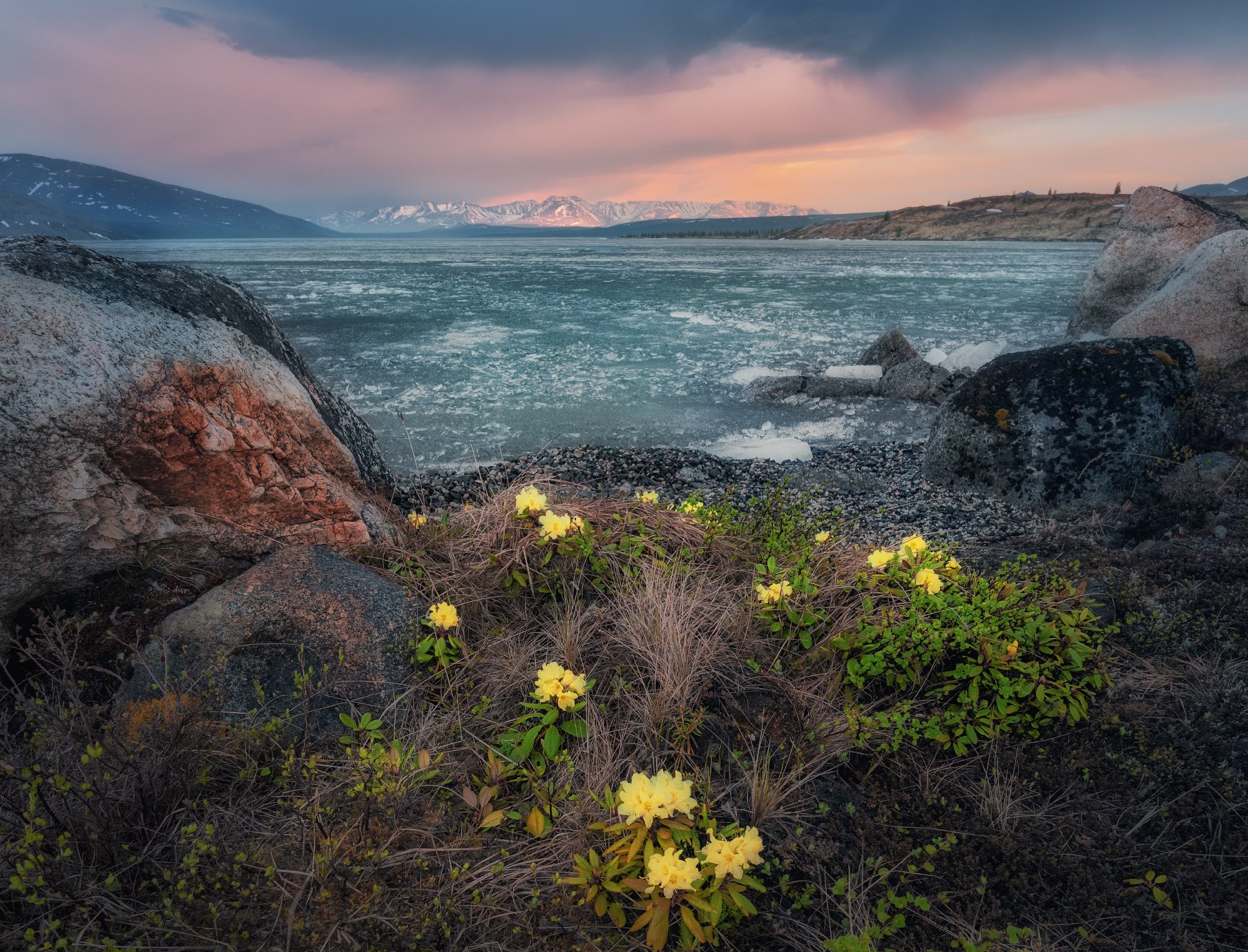 Прощальный солнечный залп на озере Момонтай. На следующее утро ждала долгая дорога домой. Озеро Момонтай. Колыма. Магаданская область. Вечер. 12 июня 2025