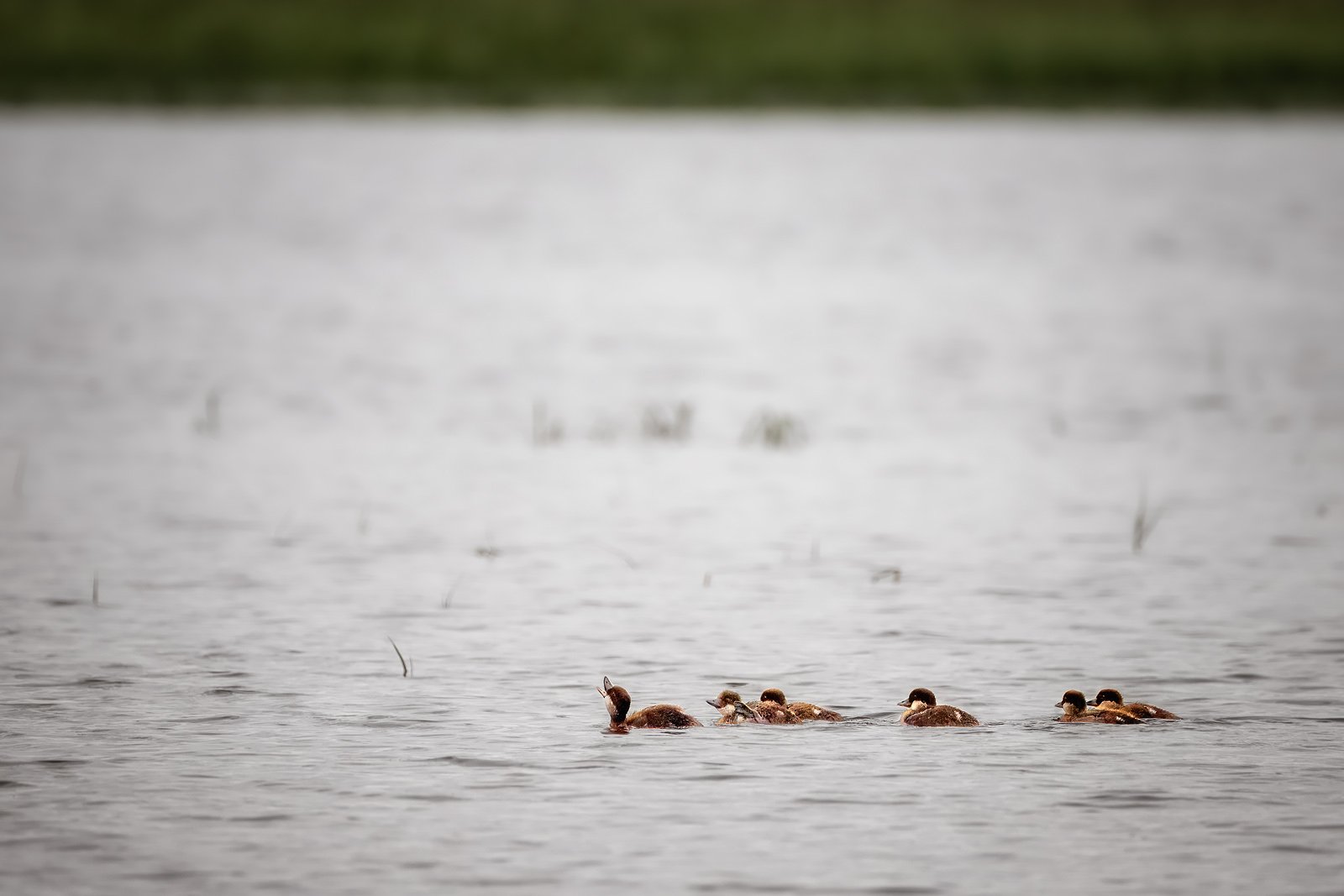 Отряд птенцов гоголя с запевалой впереди.