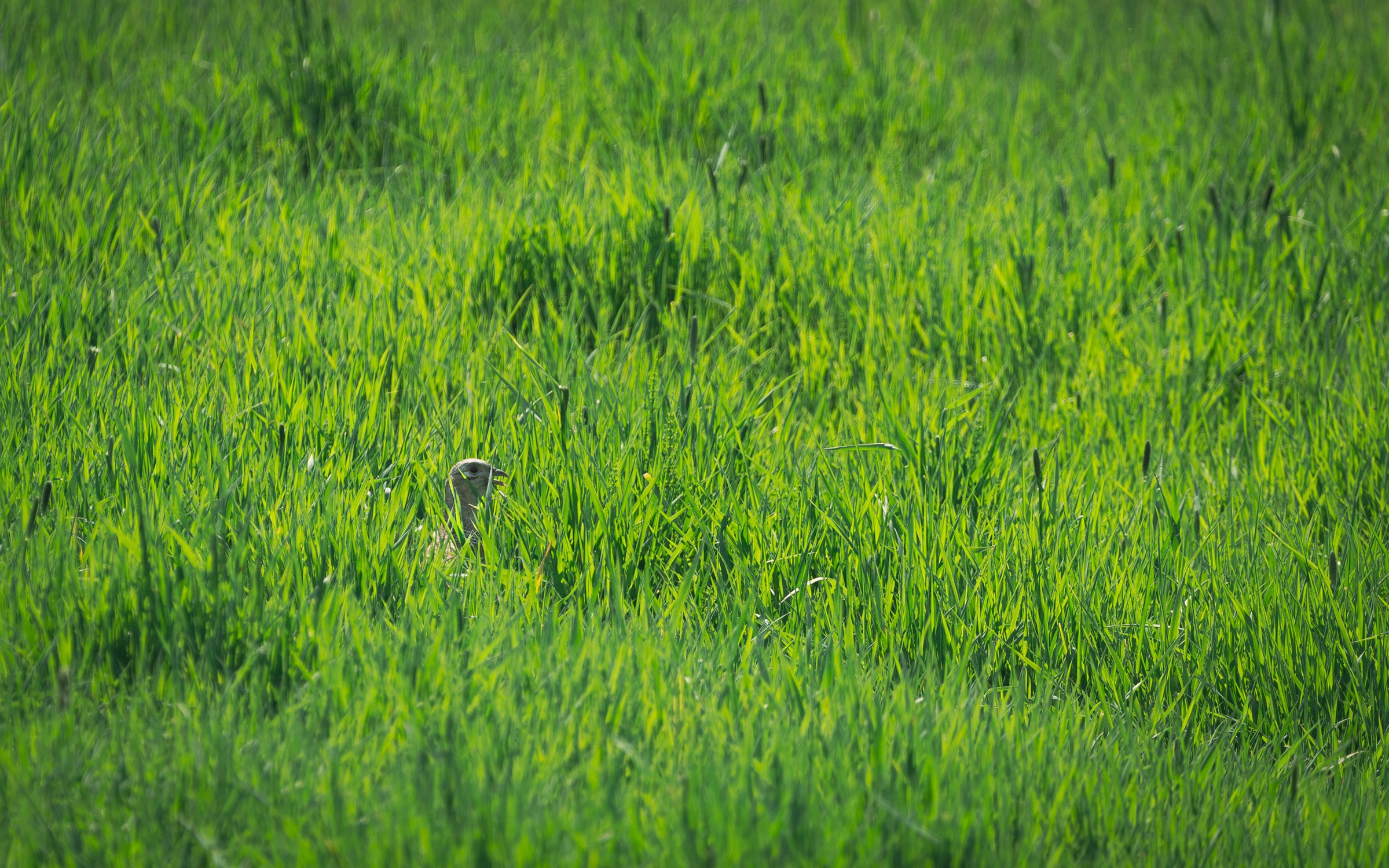 Самка фазана прячется в траве от жары и палящего солнца. Амурская область