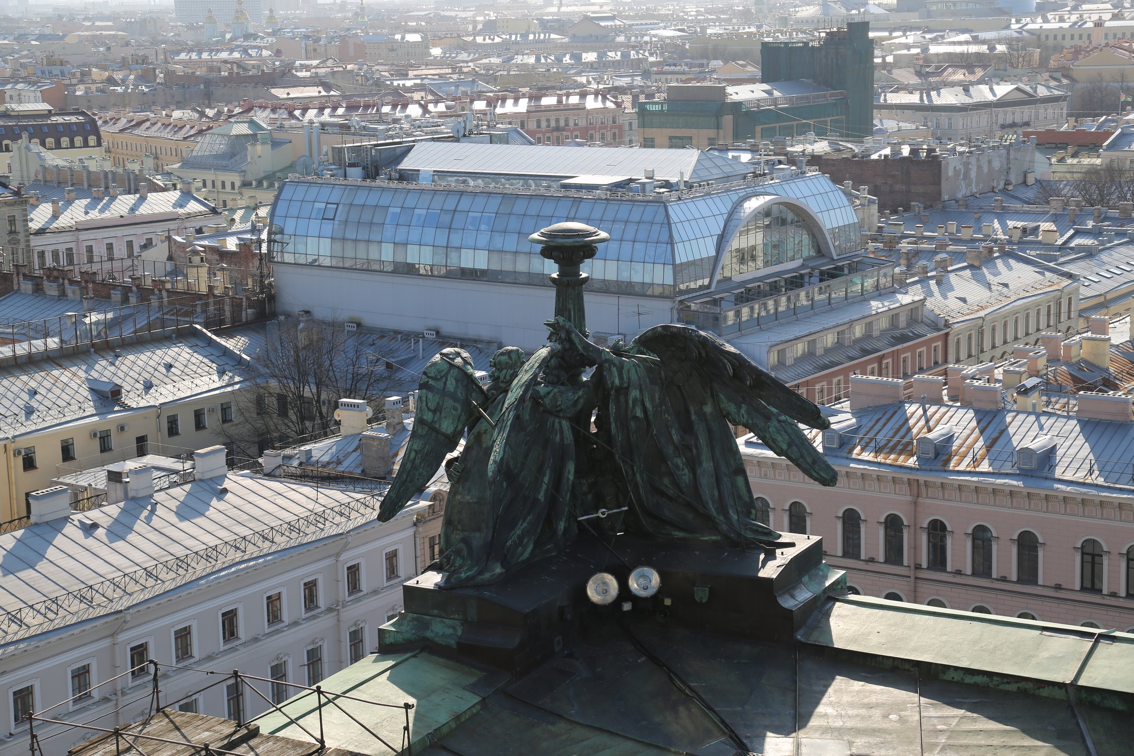 Вид с колоннады Исаакиевского собора на Санкт-Петербург.