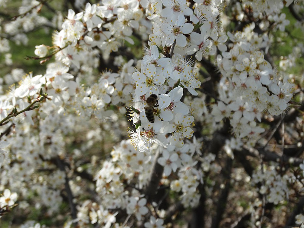 Пчела не теряет времени даром, собирая вишнёвый нектар :)