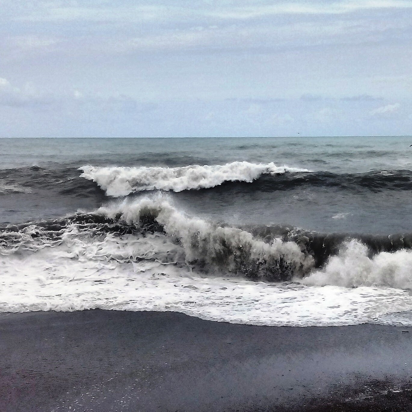 Шторм в Адлере (Сочи) в июле 2017 года. Море почернело. Волны с громким шумом налетают друг на друга, снося все на своем пути... Однако даже в этом могуществе есть нечто завораживающее...