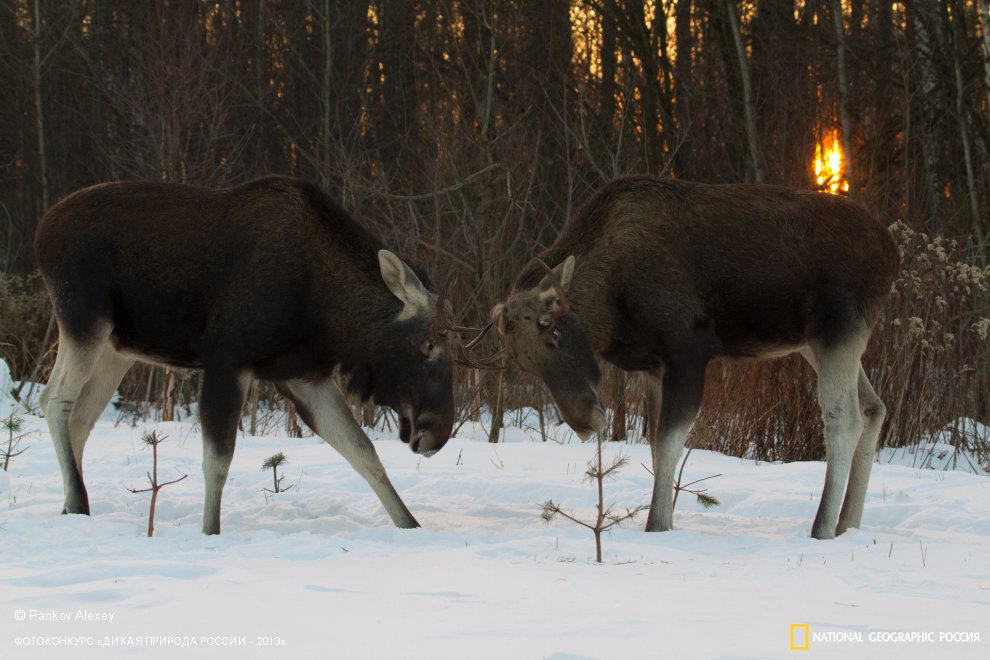 Молодые лоси решили размяться . Зима 2013