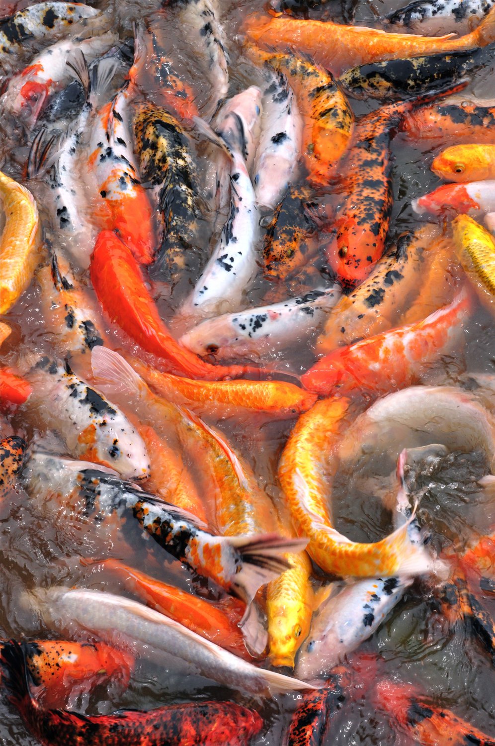 Карпы заповедника Ченгду (Китай) чувствуют себя свободно и предельно счастливо, даже в такой толкотне, если туристы подкидывают им корм.