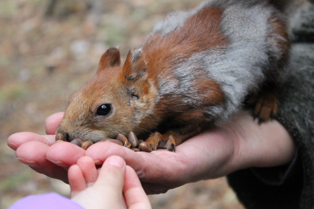 Проголодавшаяся белка,которая не боится людей.(вот такие бесстрашные белки нашего города)