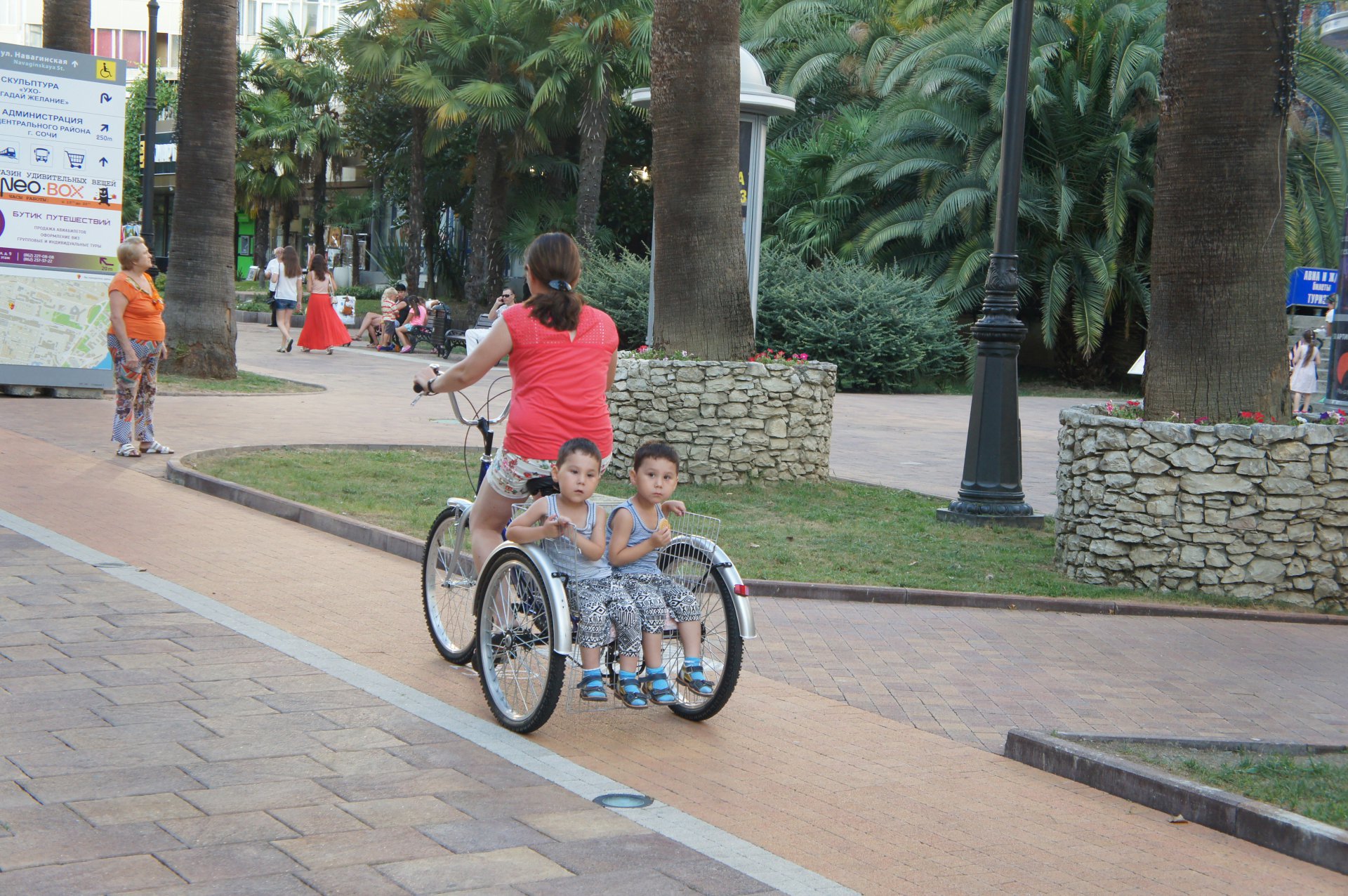 Сочи. Мама с малышами-близнецами на прогулке по центру Сочи. Считаю семью - самым настоящим, что есть в жизни всех людей.