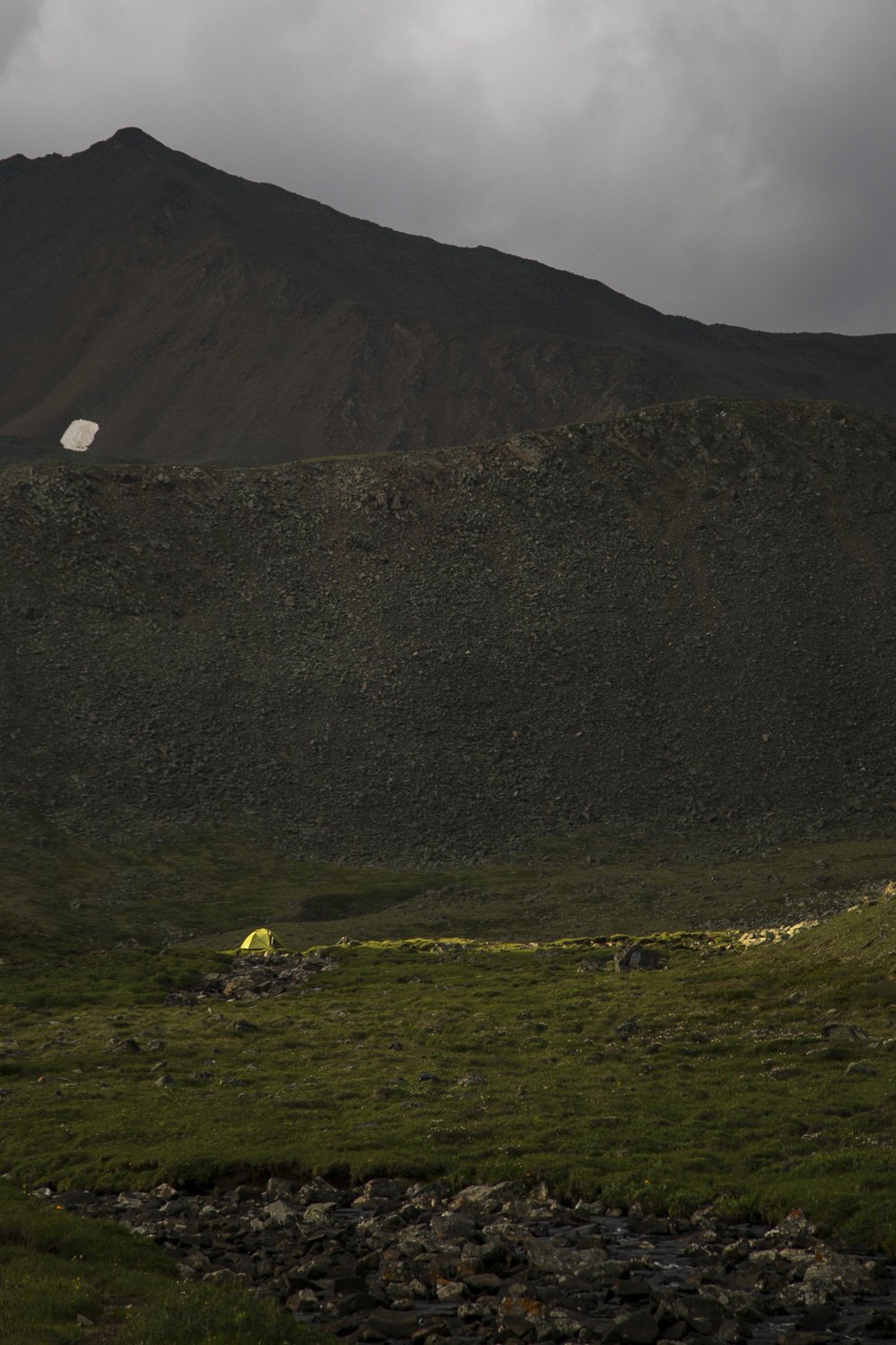 Россия. Горы Саяны на юге Сибири. Встали на ночную стоянку, и пока одни готовили ужин, другие - ночлег, я ловила последние лучики солнца.