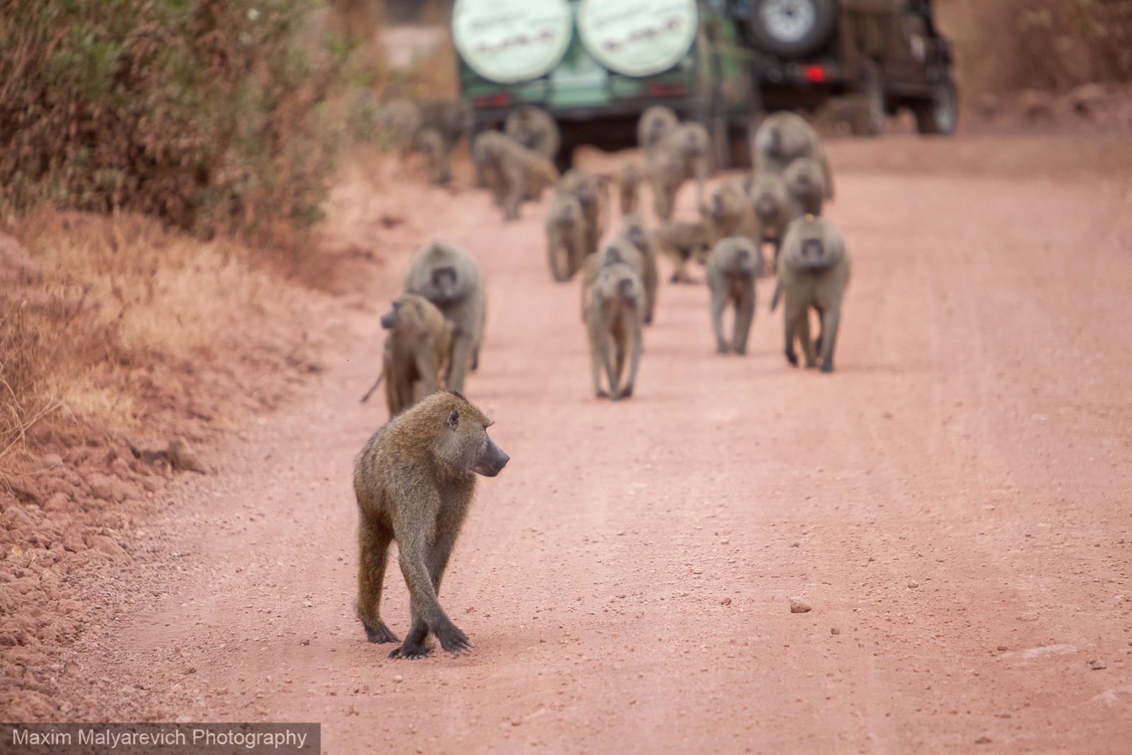 Едва мы въехали в национальный парк «Озеро Маньяра», как увидели целую банду обезьян-Бабуинов. Это была первая встреча с животными в дикой природе. Я был переполнен эмоциями и был впечатлен тем, что они без опаски гуляли рядом с машинами, совсем не замечая нас.