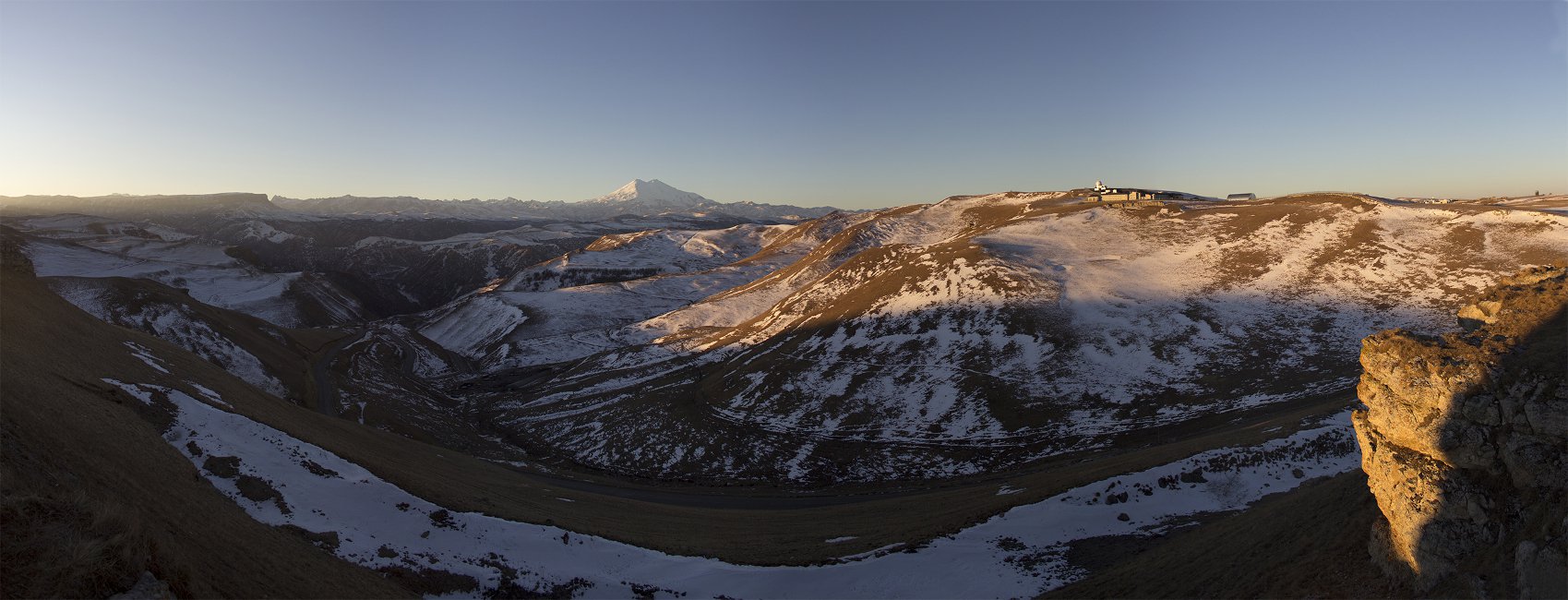 Панорамный вид на Эльбрус с плато Шатджатмаз