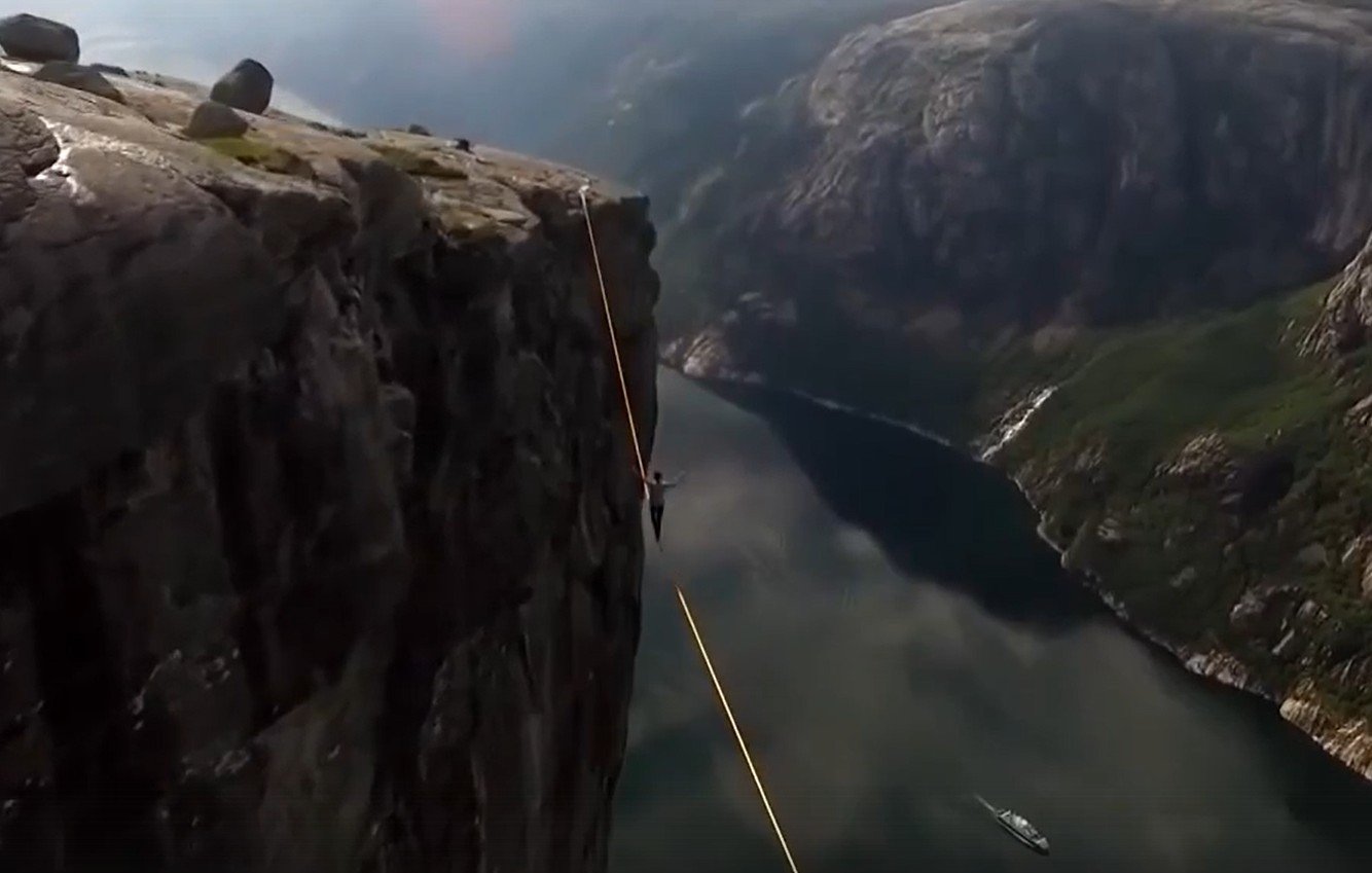 Норвежец Эспен Хатлеског (Espen Hatleskog) увлекается историей викингов, ведет съемки природы с помощью дрона и время от времени сам попадает в объектив камеры. Однажды он, занимаясь бейсджампингом, совершил прыжок на расстояние 1000 метров с вершины живописной горы Кьераг.