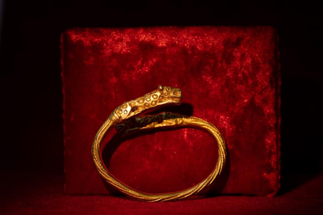 Одной из самых удивительных находок оказался внушительный браслет, изображающий двух леопардов, которые должны были изящно обхватывать руку носителя. Он весит около 370 граммов – это самое тяжелое из обнаруженных украшений.
