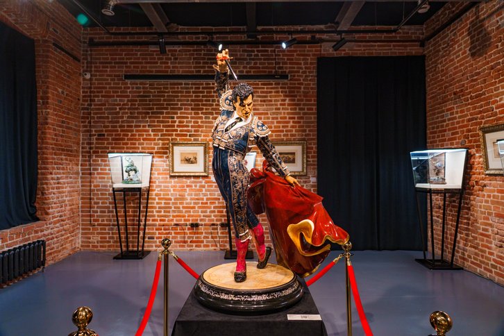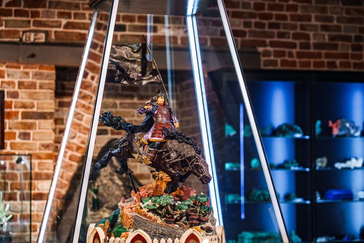Екатеринбург, столица Урала. Мы на проспекте Ленина, дом 8. В музее «Камнерезный Дом Алексея Антонова» на подиумах стоят причудливые фигуры: лазуритовая шкура быка мерцает глубокими прожилками, каменная юбка танцовщицы фламенко струится, словно настоящая ткань. Эти детали не результат работы 3D-принтера, а ювелирный кропотливый труд мастеров, годами создающих глубоко детализированные скульптурные композиции из камня. Стоимость таких работ на мировом арт-рынке может доходить до миллиона долларов.